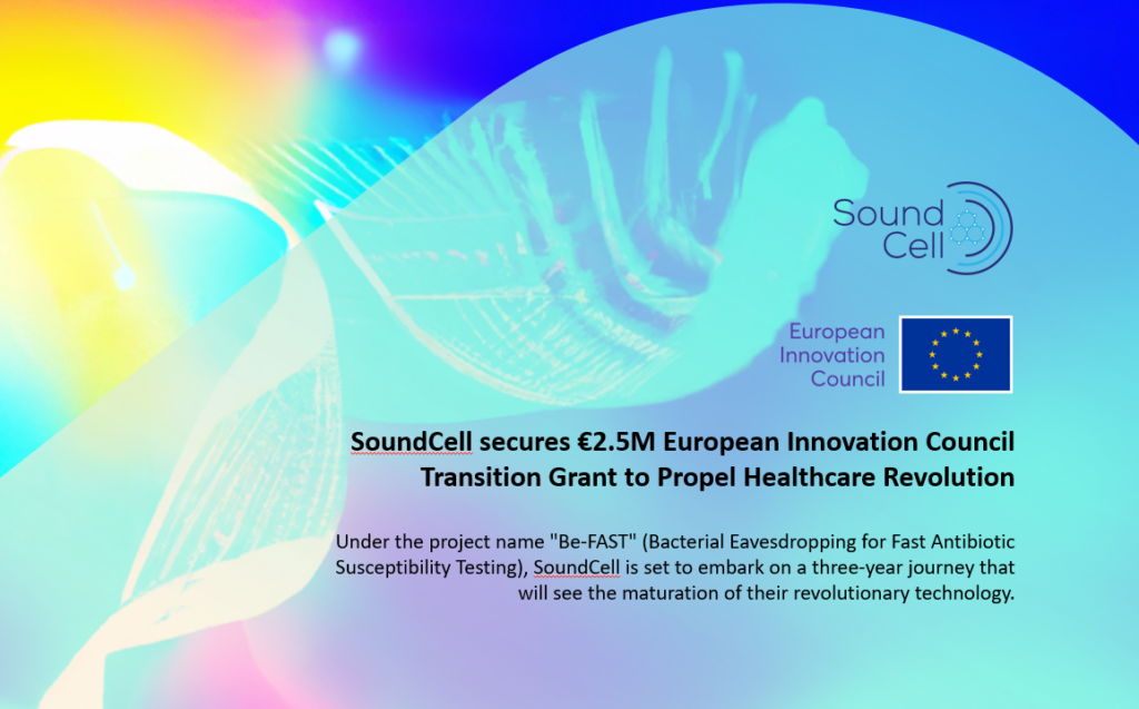 DELFT, 14-12-2023 âSoundCell proudly announces it has been awarded the esteemed European Innovation Council Transition Grant of 2.5 million euros. This transformative funding is poised to be propel the company’s pioneering work in developing graphene devices for antimicrobial resistance tests. Under the project name “Be-FAST” (Bacterial Eavesdropping for Fast Antibiotic Susceptibility Testing), SoundCell is set […]